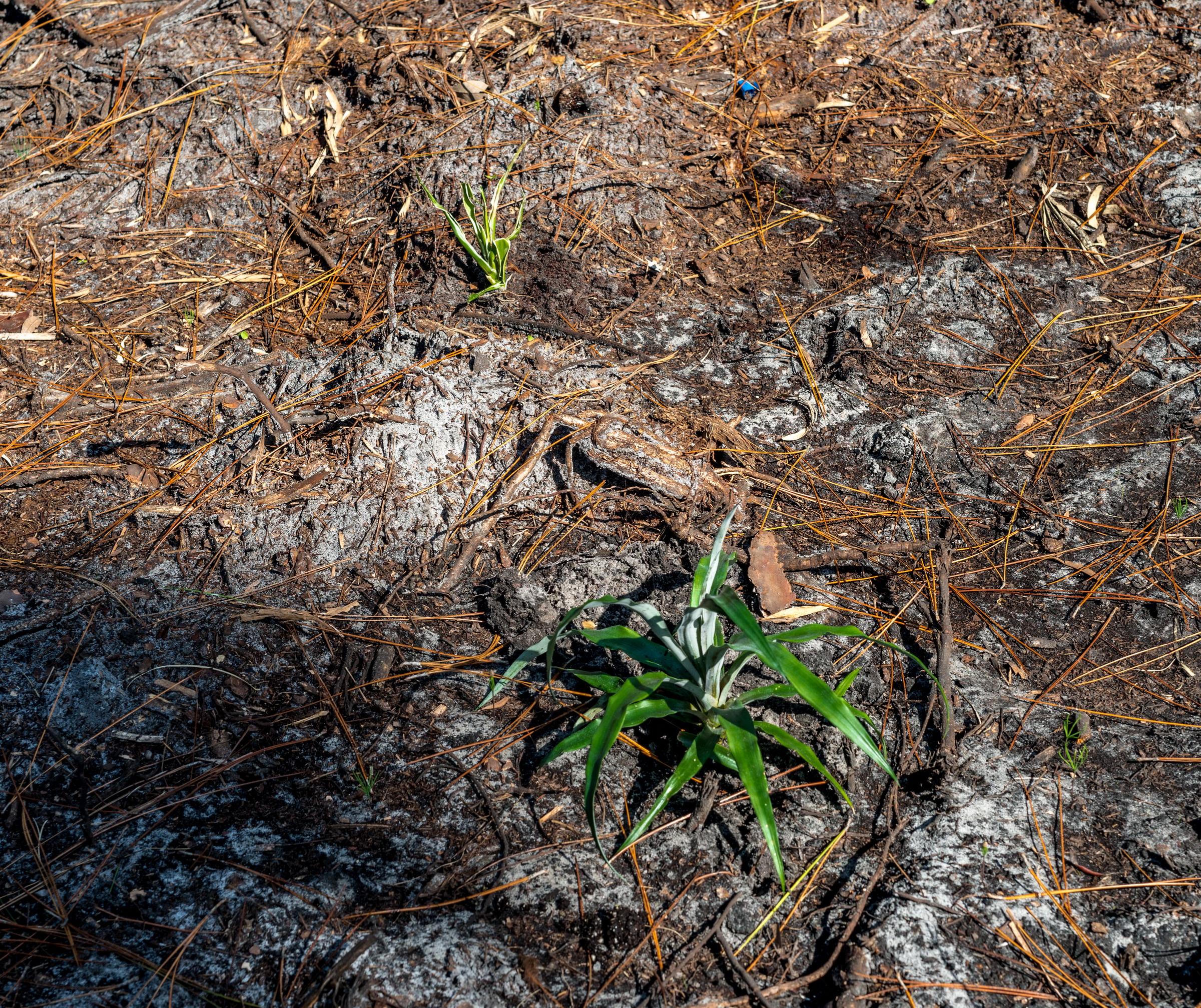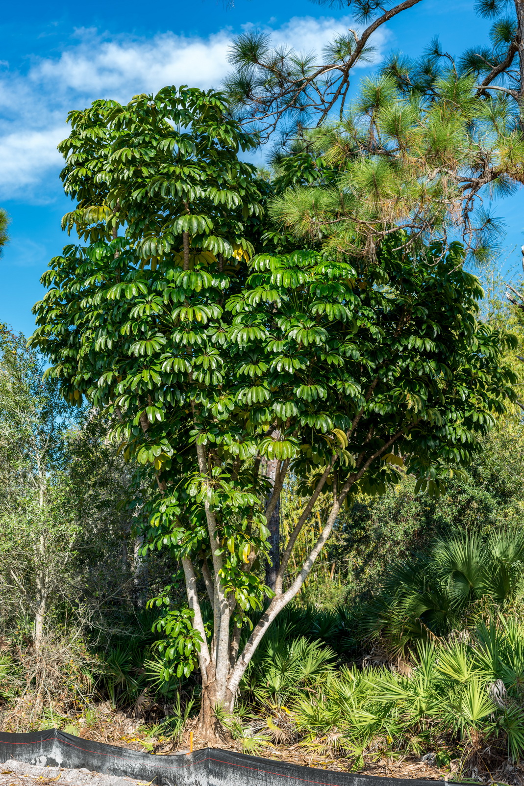 | Planting this pineapple was my ceremonious way of saying that I now live here (at least sort of) | I planted this Euphorpbia just north of the cleared area. I don't think I'll have to move it. It will make an interesting view from the lanai. | Just to the northeast of the cleared area is where nearly all of my bromeliads now reside. Only a few remain on Long Island. The rest will come soon. | I was surprised to see that Schefflera can turn into trees. Until this one, I had only seen them being tortured in dark living rooms. This wasn't planted here. Some critter (bird or rodent) must have dropped a seed. Regardless, I'm grateful to that critter. |